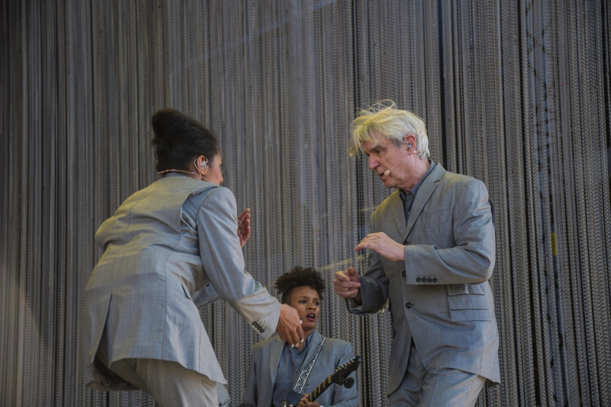 La energía y el calor continuaron para dar la bienvenida a la leyenda de los Talking Heads; David Byrne que a pesar del cambio de horario con Cut Copy, tuvo una respuesta favorable y aquí el dato curioso del festival, si bien era normal que las primeras horas de actividades los asistentes no fueran fans asiduos de la propuesta del cartel, la sorpresa fue eran mínimas las personas que identificaron a Byrne, se escuchaban platicas como “¿Quienes son los viejitos?“ “No pensé que fueran tantos Los David Byrne” “Son como los Babasónicos en inglés” y un sin fin de comentarios fuera lugar lo cual a estas alturas prácticamente ya es lo que hace mágico un Festival pues bastó con escuchar las primeras dos canciones para tener a una audiencia en el Escenario Capital enfiestada con el tremendo show que presentó, instrumentos wireless, coreografías de 12 músicos perfectamente bien sincronizados, para los conocedores era inimaginable lo que estaba sucediendo, David Byrne controlando el escenario sin ningún recurso audiovisual más allá de la música y el cuerpo de cada integrante de su banda, después de 50 minutos logró cautivar prácticamente al total de su audiencia que en su mayoría el contacto por primera vez.