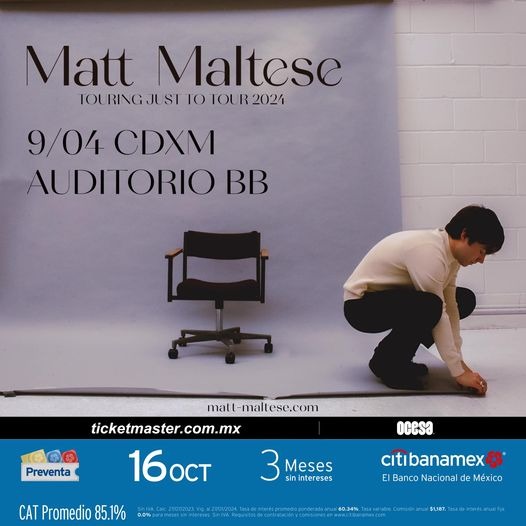 Matt se presentará en la Ciudad de México en el Auditorio BB como parte de su “Touring just to tour 2024” el día 9 de abril de 2024 y los boletos están disponibles en ticketmaster.